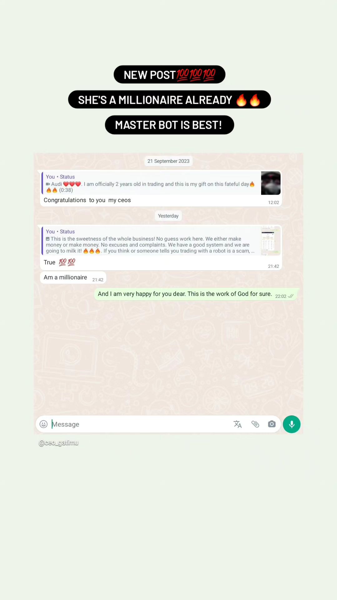 CEO Gatimu is a relentless force in the trading world, cutting through the noise and giving traders the strategies and tools to win. If you’re ready to stop making excuses and start making money, he’s the one to follow.